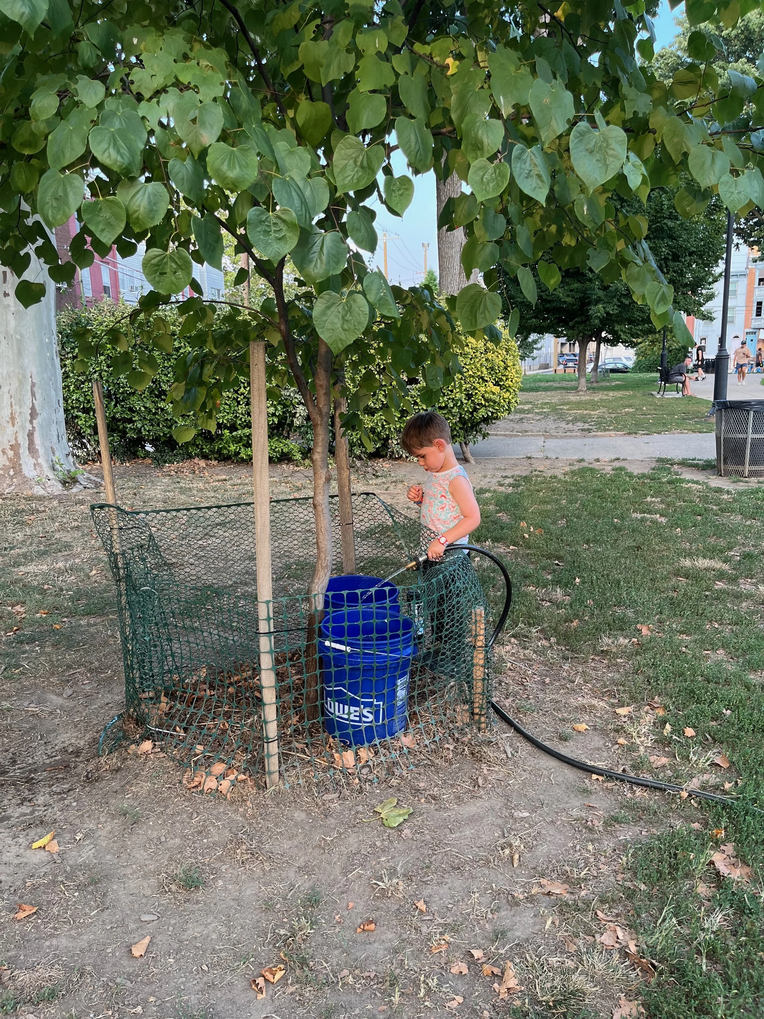 Branch out this year by becoming one of our tree care volunteers. You can sign up to help us water the young trees around the park and help them to survive and provide shade for years to come. Sign up for a weekly shift at your convenience – we will train you to perform the watering (it only takes 45 minutes!). This is a great way to volunteer, get some fresh air, and meet neighbors. Fill out the Tree Team Google Form to assist with tree watering and care. -